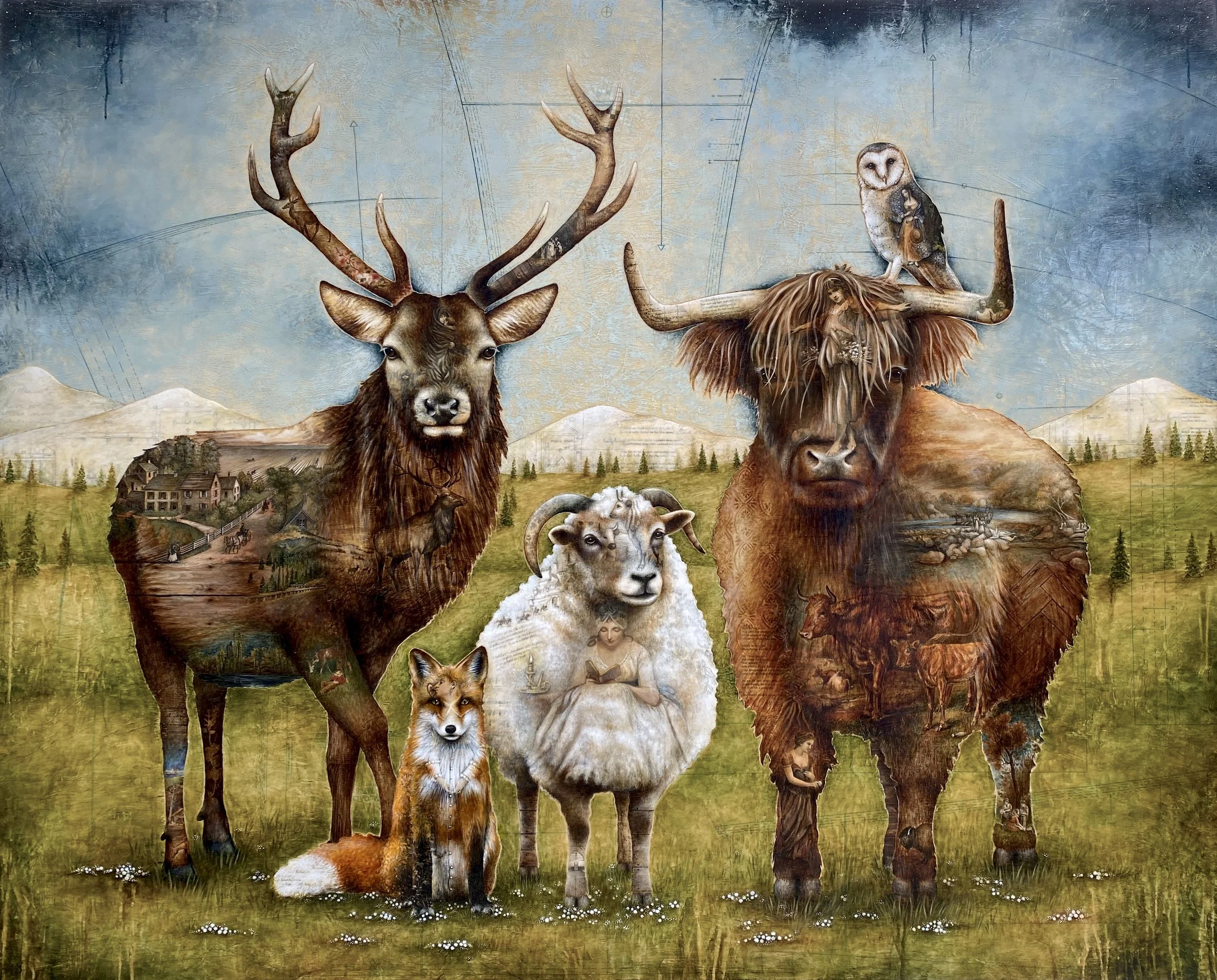 So I had to think, go back and think some more. Because in truth, the animals just started showing up. They were jumping into my thoughts, and into my mind, into my sketches, and then onto my canvases.
